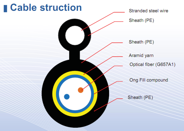 - Indoor and outdoor cabling, working as connection cable from access terminal box to subcribers, suitable with AON/GPON/CATV network.