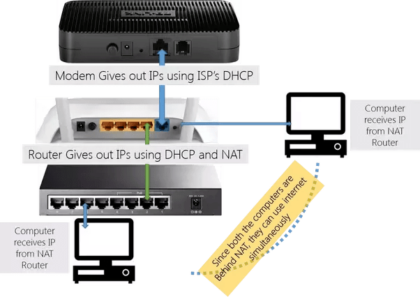 When connecting more than one device to a modem, a router is generally required. A router acts as the “traffic director” of a network. It takes information provided by the modem and routes it to the devices attached to the modem, then the router creates Network Address Translated ( NAT) internal private IP address to the connected devices so they can be accessed. Devices like computers, game consoles and etc can be connected to a router wirelessly or through network cables. Some advanced features of a router includes built-in firewall to help protect the network from unwanted traffic.