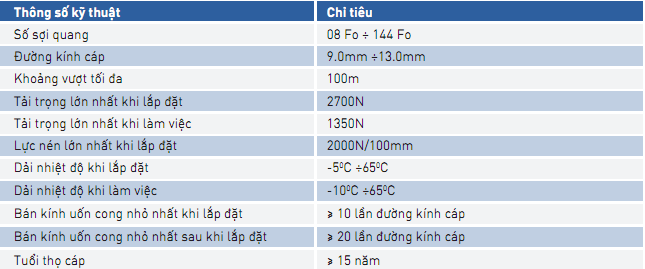 - Đường kính cáp nhỏ gọn, thuật tiện khi vận chuyển và lắp đặt;
