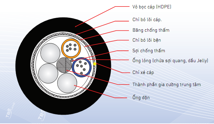 Cáp quang cống kim loại 60FO là cáp hình tròn có lớp bọc kim loại chống động vật gặm nhấm
