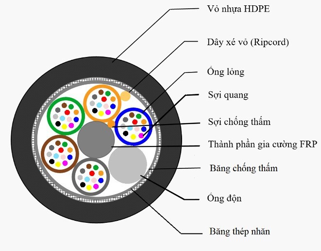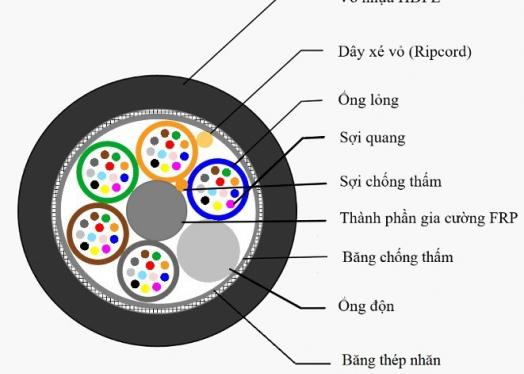 Cáp quang cống kim loại 60FO là cáp hình tròn có lớp bọc kim loại chống động vật gặm nhấm