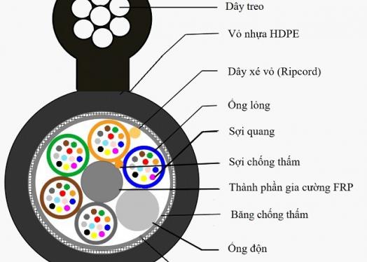 Cáp quang treo kim loại 72 FO TBD hình số 8 có lớp bọc kim loại chống gặm nhấm có dây treo kim loại