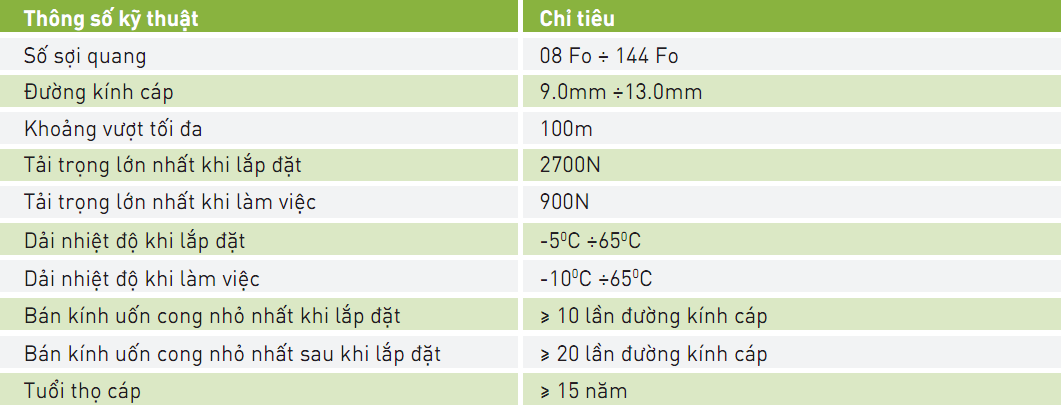 - Đường kính cáp nhỏ gọn, thuận tiện khi lắp đặt và vận chuyển