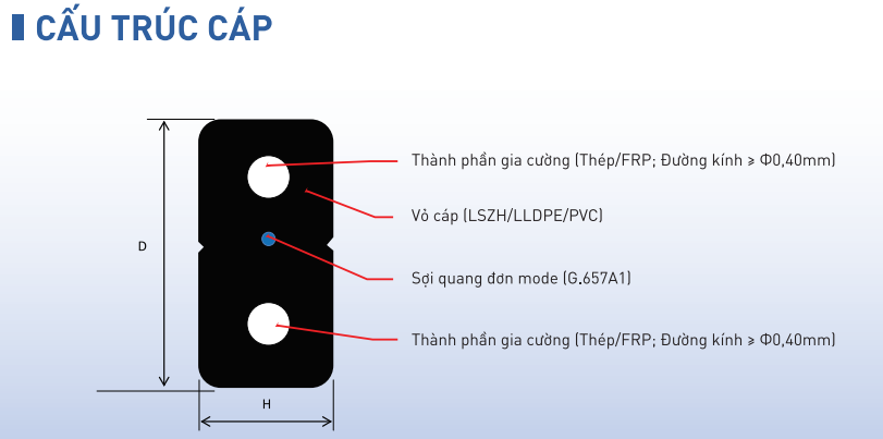 Dây thuê bao quang đệm chặt là dây cáp quang thông dụng nhất được sử dụng cho mạng internet trong nhà với các đặc điểm:
